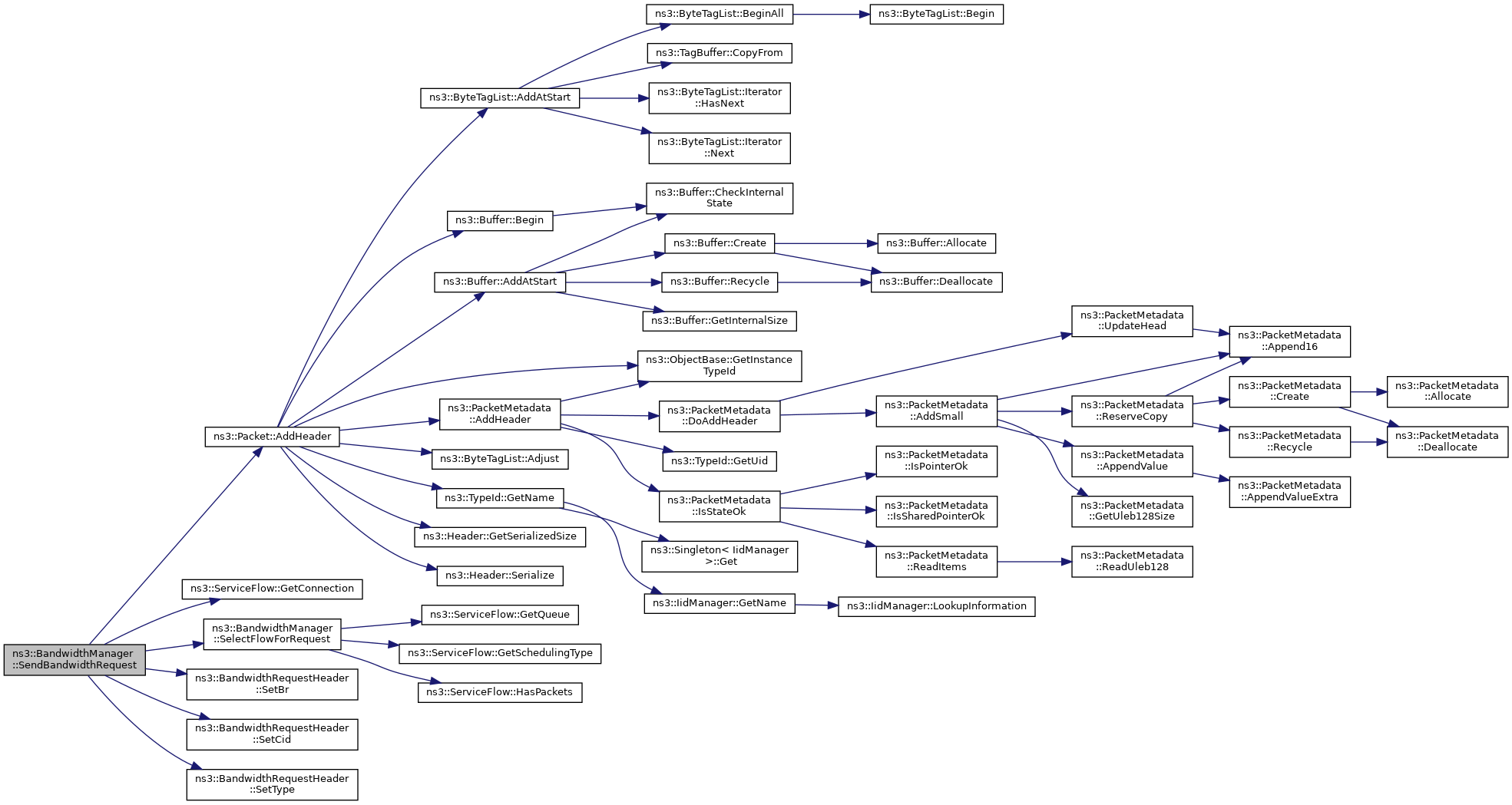 Here is the call graph for this function:| ServiceFlow * ns3::BandwidthManager::SelectFlowForRequest | ( | uint32_t & | bytesToRequest | ) |