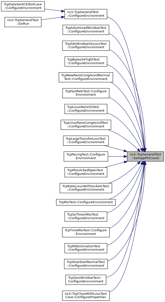 Referenced by ConfigureEnvironment(), TcpNewRenoCongAvoidNormalTest::ConfigureEnvironment(), TcpLinuxRenoCongAvoidTest::ConfigureEnvironment(), TcpPacingTest::ConfigureEnvironment(), TcpPktsAckedOpenTest::ConfigureEnvironment(), TcpRttEstimationTest::ConfigureEnvironment(), TcpZeroWindowTest::ConfigureEnvironment(), and ns3::TcpCloseWithLossTestCase::ConfigureProperties().