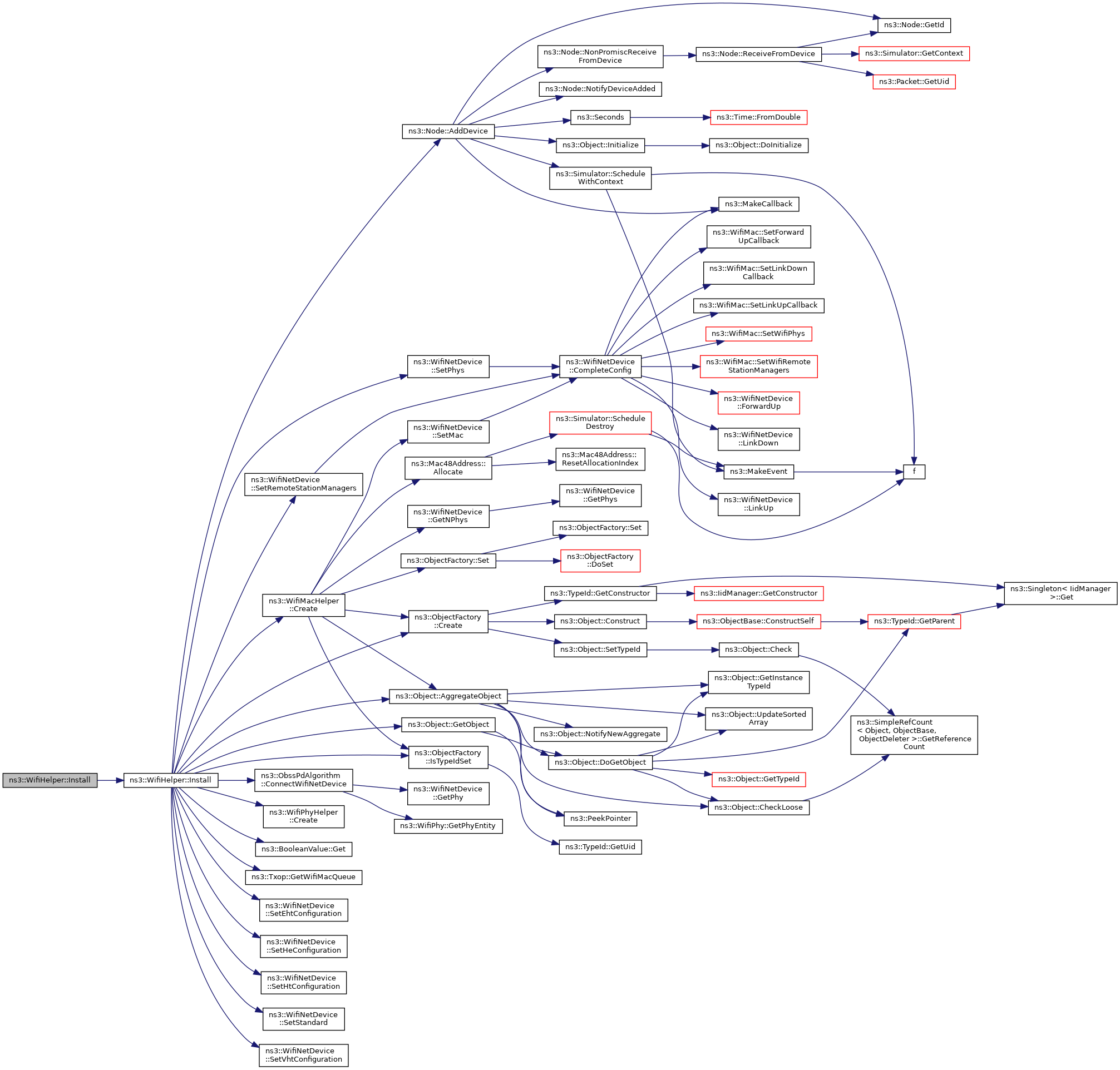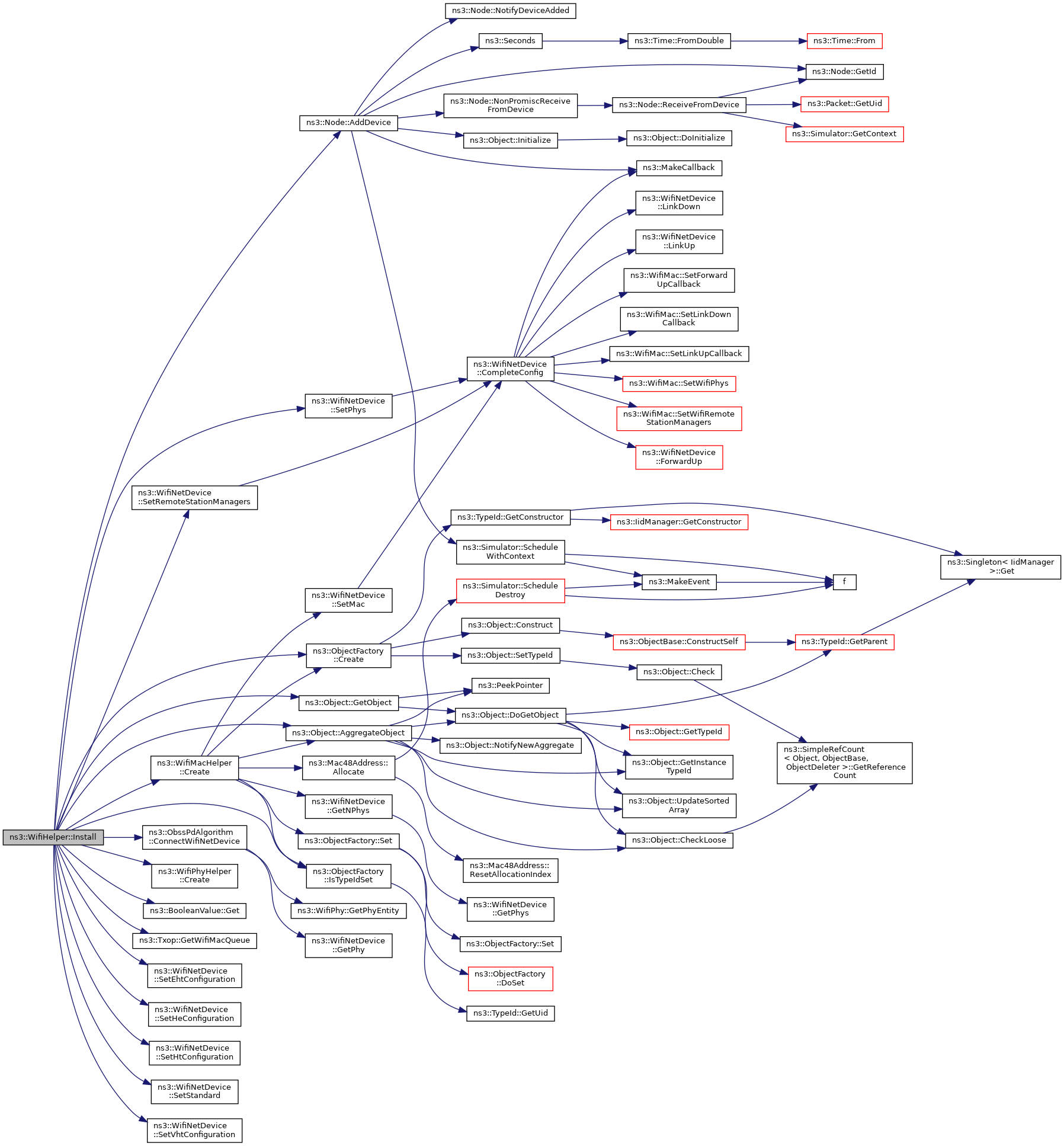 | virtual NetDeviceContainer | Install (const WifiPhyHelper &phy, const WifiMacHelper &mac, Ptr< Node > node) const |