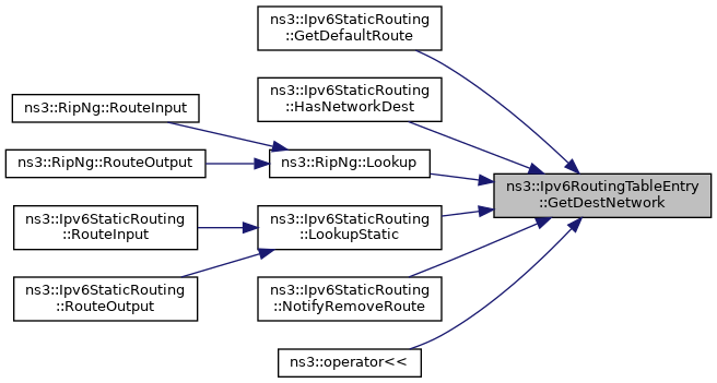 Here is the caller graph for this function:| Ipv6Address ns3::Ipv6RoutingTableEntry::GetDestNetwork | ( | ) | const |