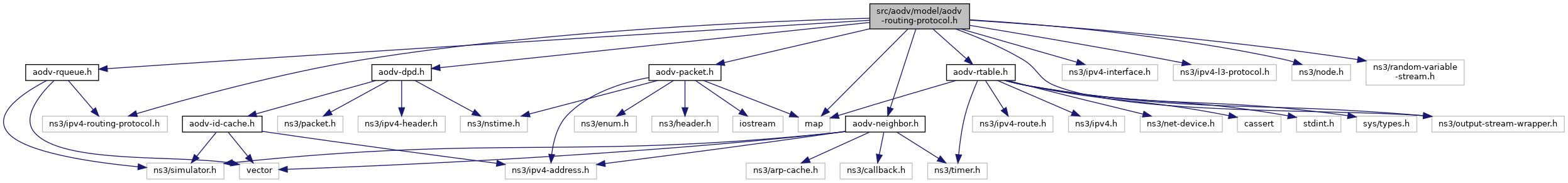 Include dependency graph for aodv-routing-protocol.h: