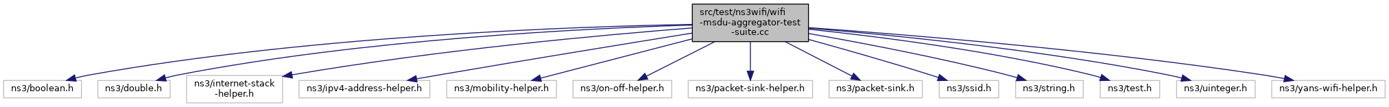Include dependency graph for wifi-msdu-aggregator-test-suite.cc:Go to the source code of this file.