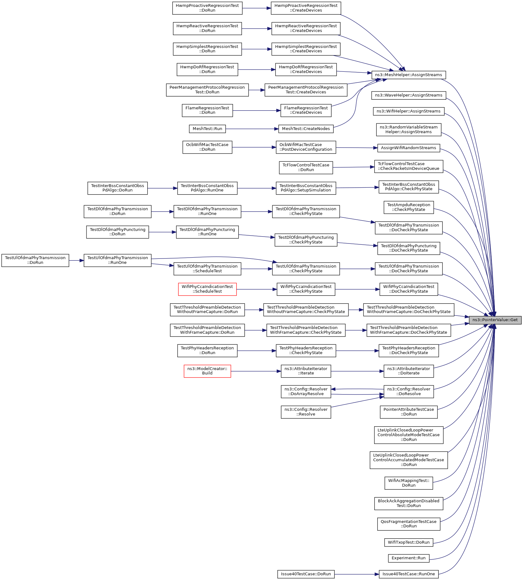 Here is the call graph for this function:| Pointer ns3::PointerValue::Get |