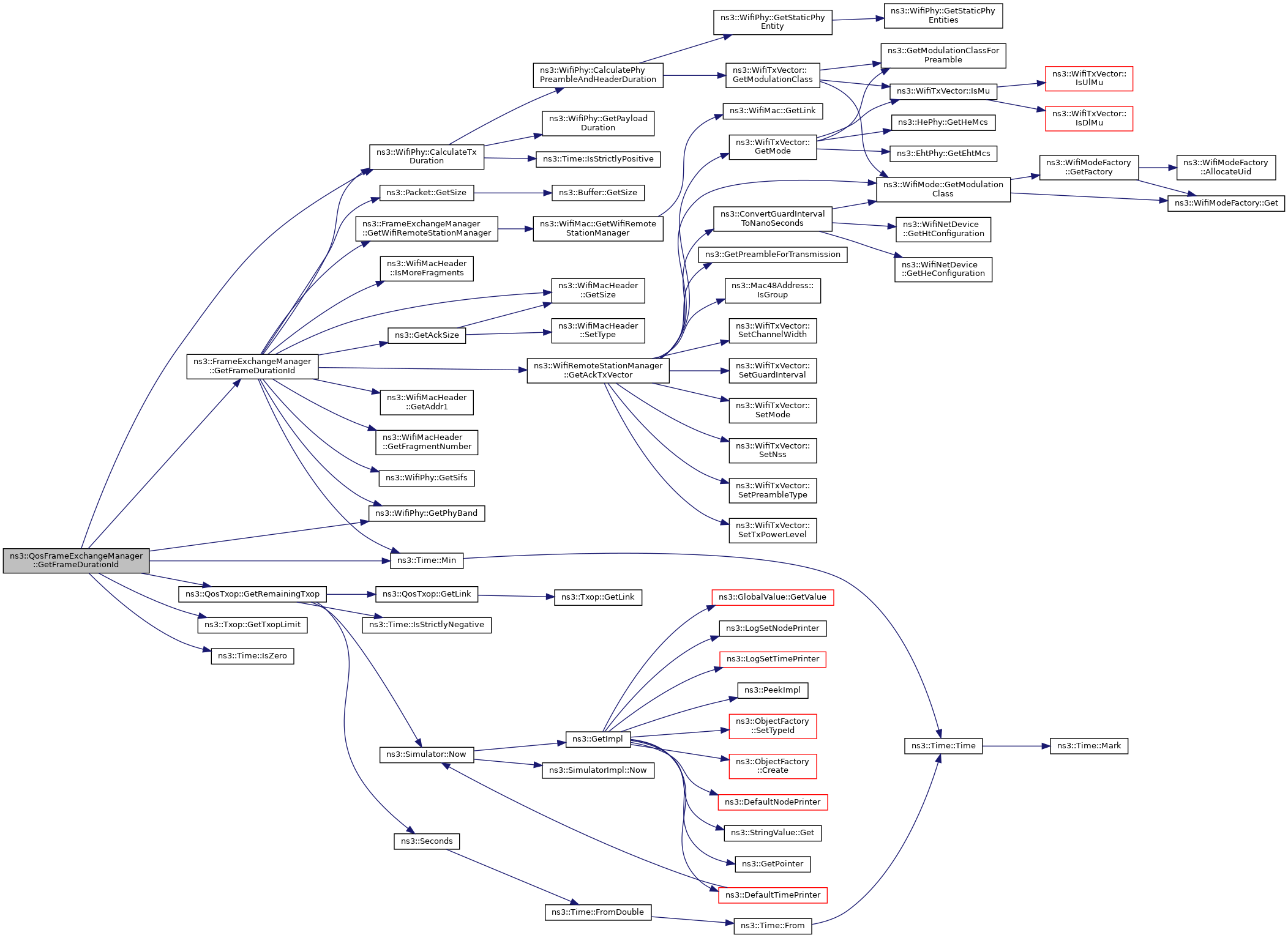 References ns3::Time::As(), ns3::WifiPhy::GetMaxPsduSize(), ns3::WifiTxVector::GetModulationClass(), ns3::GetPpduMaxTime(), ns3::WifiTxVector::GetPreambleType(), ns3::FrameExchangeManager::GetTxDuration(), ns3::Time::IsNegative(), ns3::Time::IsStrictlyPositive(), ns3::WifiTxParameters::m_txVector, ns3::Time::Min(), ns3::Time::MS, NS_LOG_DEBUG, and NS_LOG_FUNCTION.