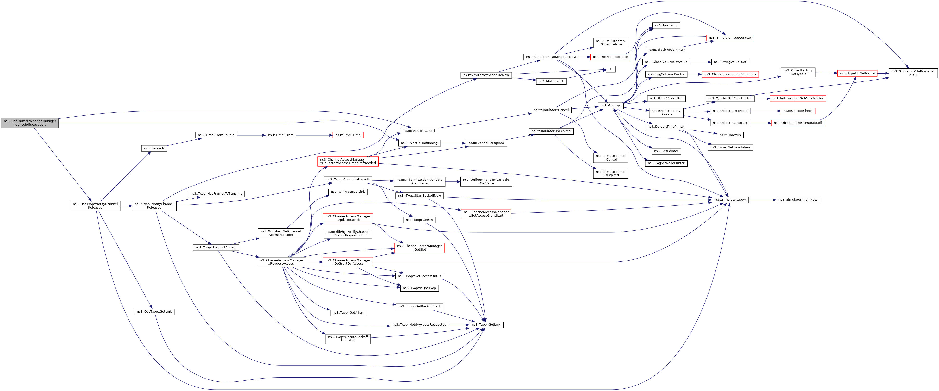 References ns3::WifiPhy::GetPifs(), ns3::Txop::GetTxopLimit(), ns3::EventId::IsRunning(), ns3::Time::IsStrictlyPositive(), m_edca, m_edcaBackingOff, m_initialFrame, ns3::FrameExchangeManager::m_linkId, ns3::FrameExchangeManager::m_phy, m_pifsRecovery, m_pifsRecoveryEvent, ns3::QosTxop::NotifyChannelReleased(), NS_ASSERT, NS_ASSERT_MSG, NS_LOG_DEBUG, NS_LOG_FUNCTION, PifsRecovery(), ns3::Simulator::Schedule(), and ns3::FrameExchangeManager::TransmissionFailed().