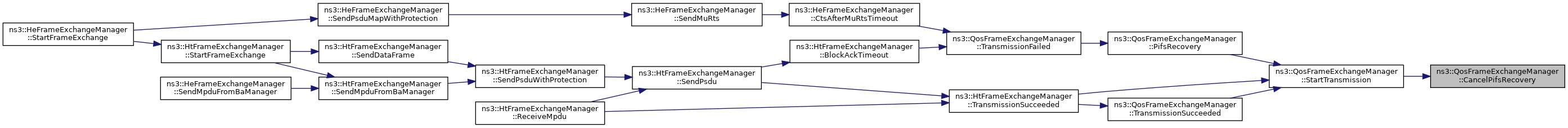 Referenced by ns3::HtFrameExchangeManager::BlockAckTimeout(), CancelPifsRecovery(), ns3::HeFrameExchangeManager::CtsAfterMuRtsTimeout(), DoDispose(), GetCtsToSelfDurationId(), GetFrameDurationId(), ns3::HeFrameExchangeManager::GetMuRtsDurationId(), ns3::HtFrameExchangeManager::GetPsduDurationId(), GetRtsDurationId(), PifsRecovery(), ns3::HtFrameExchangeManager::ReceiveMpdu(), SendCfEndIfNeeded(), ns3::HeFrameExchangeManager::SendPsduMap(), StartTransmission(), TransmissionFailed(), ns3::HtFrameExchangeManager::TransmissionSucceeded(), and TransmissionSucceeded().