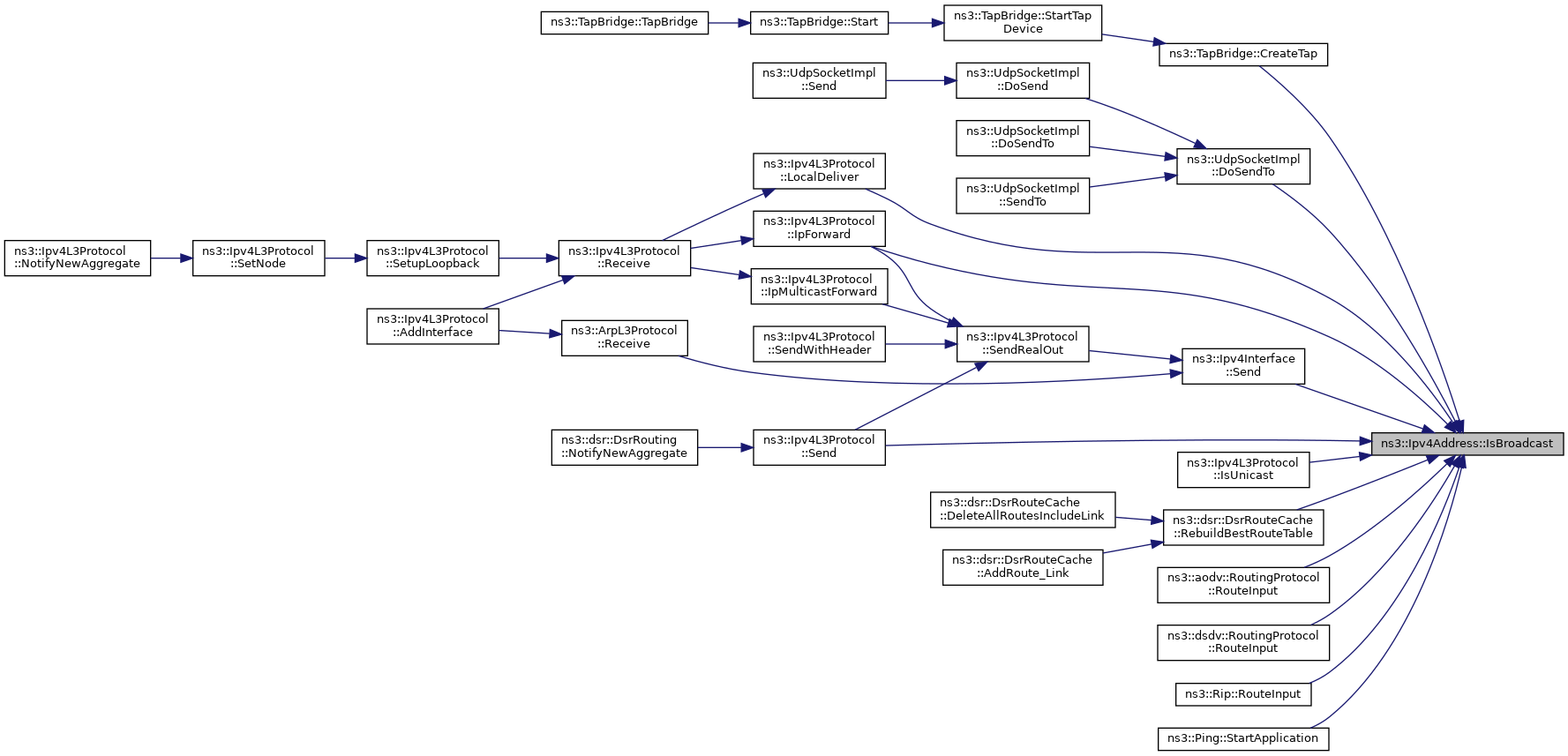 Referenced by ns3::dsr::DsrOptionRerr::DoSendError(), ns3::UdpSocketImpl::DoSendTo(), ns3::Ipv4L3Protocol::IpForward(), ns3::addressUtils::IsMulticast(), ns3::Ipv4L3Protocol::IsUnicast(), ns3::Ipv4L3Protocol::LocalDeliver(), ns3::dsr::DsrOptionSR::Process(), ns3::Ipv4L3Protocol::Receive(), ns3::aodv::RoutingProtocol::RouteInput(), ns3::dsdv::RoutingProtocol::RouteInput(), ns3::Ipv4ListRouting::RouteInput(), ns3::Ipv4StaticRouting::RouteInput(), ns3::Rip::RouteInput(), ns3::Ipv4GlobalRouting::RouteOutput(), ns3::Ipv4StaticRouting::RouteOutput(), ns3::Rip::RouteOutput(), ns3::Ipv4Interface::Send(), ns3::Ipv4L3Protocol::Send(), and ns3::Ping::StartApplication().