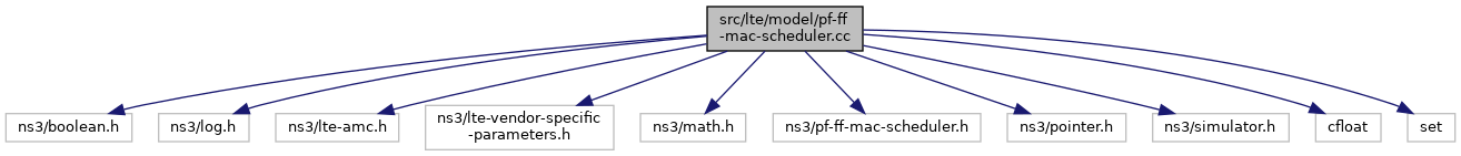 Include dependency graph for pf-ff-mac-scheduler.cc:Go to the source code of this file.