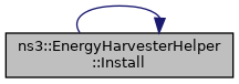 Here is the call graph for this function:| EnergyHarvesterContainer ns3::EnergyHarvesterHelper::Install | ( | Ptr< EnergySource > | source | ) | const |
