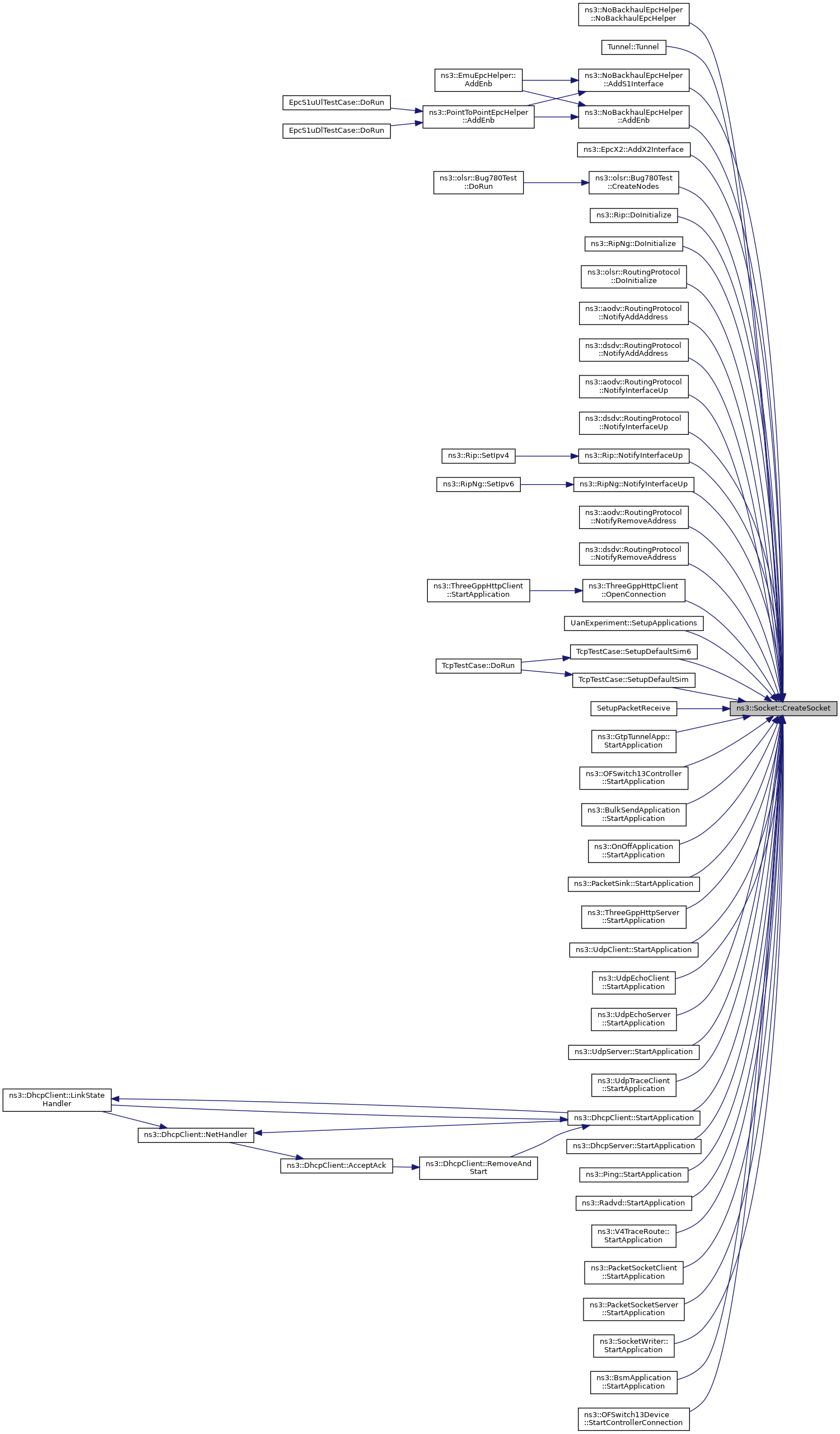 Referenced by ns3::EpcEnbApplication::EpcEnbApplication(), ns3::EpcPgwApplication::EpcPgwApplication(), ns3::EpcSgwApplication::EpcSgwApplication(), ns3::OFSwitch13SocketHandler::OFSwitch13SocketHandler(), ns3::TcpSocketBase::TcpSocketBase(), Tunnel::Tunnel(), ns3::EpcSgwApplication::AddMme(), ns3::EpcEnbApplication::AddS1Interface(), ns3::EpcMmeApplication::AddSgw(), ns3::EpcX2::AddX2Interface(), ns3::ThreeGppHttpClient::ConnectionSucceededCallback(), Bug772ChainTest::CreateDevices(), ns3::olsr::Bug780Test::CreateNodes(), ns3::olsr::HelloRegressionTest::CreateNodes(), ns3::olsr::TcRegressionTest::CreateNodes(), ns3::EpcPgwApplication::DoDispose(), ns3::EpcSgwApplication::DoDispose(), ns3::Rip::DoInitialize(), ns3::RipNg::DoInitialize(), ns3::olsr::RoutingProtocol::DoInitialize(), ns3::aodv::LoopbackTestCase::DoRun(), IcmpEchoReplyTestCase::DoRun(), IcmpTimeExceedTestCase::DoRun(), IcmpV6EchoReplyTestCase::DoRun(), IcmpV6TimeExceedTestCase::DoRun(), Ipv4DynamicGlobalRoutingTestCase::DoRun(), Ipv4RawSocketImplTest::DoRun(), Ipv6RawSocketImplTest::DoRun(), DynamicNeighborCacheTest::DoRun(), UdpSocketImplTest::DoRun(), Udp6SocketImplTest::DoRun(), NixVectorRoutingTest::DoRun(), TcpEndPointBug2211Test::HandleAccept(), ns3::PacketSink::HandleAccept(), ns3::TcpGeneralTest::HandleAccept(), HwmpProactiveRegressionTest::InstallApplications(), HwmpReactiveRegressionTest::InstallApplications(), HwmpSimplestRegressionTest::InstallApplications(), HwmpDoRfRegressionTest::InstallApplications(), FlameRegressionTest::InstallApplications(), ns3::DhcpClient::LinkStateHandler(), ns3::ThreeGppHttpServer::NewConnectionCreatedCallback(), ns3::aodv::RoutingProtocol::NotifyAddAddress(), ns3::dsdv::RoutingProtocol::NotifyAddAddress(), ns3::aodv::RoutingProtocol::NotifyInterfaceUp(), ns3::dsdv::RoutingProtocol::NotifyInterfaceUp(), ns3::Rip::NotifyInterfaceUp(), ns3::RipNg::NotifyInterfaceUp(), ns3::aodv::RoutingProtocol::NotifyRemoveAddress(), ns3::dsdv::RoutingProtocol::NotifyRemoveAddress(), ns3::ThreeGppHttpClient::OpenConnection(), NetAnimExperiment::Run(), Experiment::Run(), TcpTestCase::ServerHandleConnectionCreated(), TcpTestCase::SetupDefaultSim(), TcpTestCase::SetupDefaultSim6(), ns3::GtpTunnelApp::StartApplication(), ns3::PacketSink::StartApplication(), ns3::ThreeGppHttpServer::StartApplication(), ns3::UdpClient::StartApplication(), ns3::UdpEchoClient::StartApplication(), ns3::UdpEchoServer::StartApplication(), ns3::UdpServer::StartApplication(), ns3::UdpTraceClient::StartApplication(), ns3::DhcpClient::StartApplication(), ns3::DhcpServer::StartApplication(), ns3::Ping::StartApplication(), ns3::Radvd::StartApplication(), ns3::V4TraceRoute::StartApplication(), EpsBearerTagUdpClient::StartApplication(), ns3::PacketSocketClient::StartApplication(), ns3::PacketSocketServer::StartApplication(), ns3::BsmApplication::StartApplication(), Ipv4FragmentationTest::StartClient(), Ipv6FragmentationTest::StartClient(), SixlowpanFragmentationTest::StartClient(), Ipv4FragmentationTest::StartServer(), Ipv6FragmentationTest::StartServer(), SixlowpanFragmentationTest::StartServer(), ns3::OFSwitch13Controller::StopApplication(), ns3::PacketSink::StopApplication(), ns3::ThreeGppHttpClient::StopApplication(), ns3::ThreeGppHttpServer::StopApplication(), ns3::UdpEchoClient::StopApplication(), ns3::UdpEchoServer::StopApplication(), ns3::UdpServer::StopApplication(), ns3::DhcpClient::StopApplication(), ns3::DhcpServer::StopApplication(), ns3::Radvd::StopApplication(), and ns3::PacketSocketServer::StopApplication().