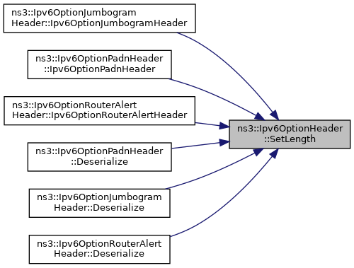 Here is the caller graph for this function:| void ns3::Ipv6OptionHeader::SetLength | ( | uint8_t | length | ) |