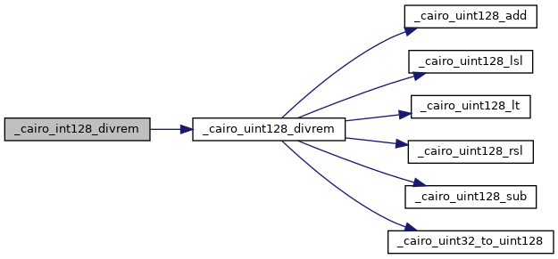 Here is the call graph for this function:| cairo_quorem64_t cairo_I _cairo_int_96by64_32x64_divrem | ( | cairo_int128_t | num, |