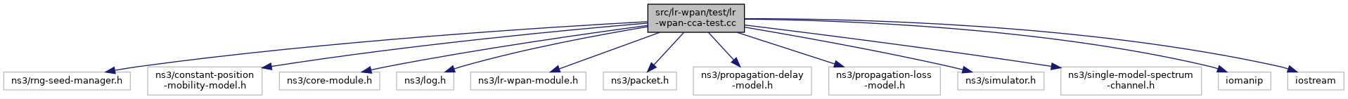 Include dependency graph for lr-wpan-cca-test.cc:Go to the source code of this file.