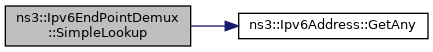 | Ipv6EndPoint * | SimpleLookup (Ipv6Address dst, uint16_t dport, Ipv6Address src, uint16_t sport) |
