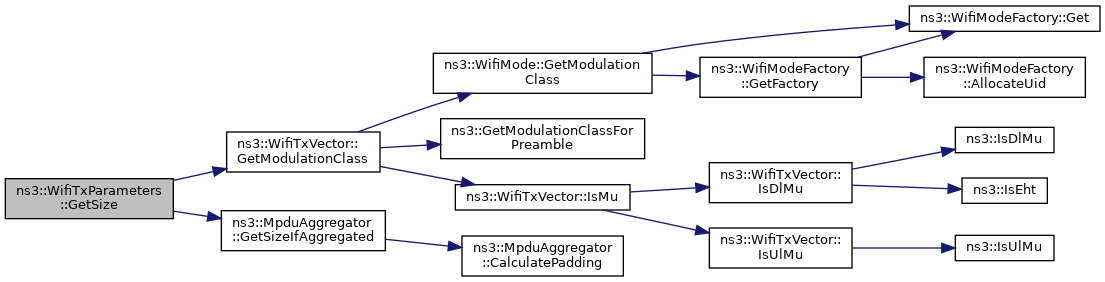 Here is the caller graph for this function:| uint32_t ns3::WifiTxParameters::GetSize | ( | Mac48Address | receiver | ) | const |