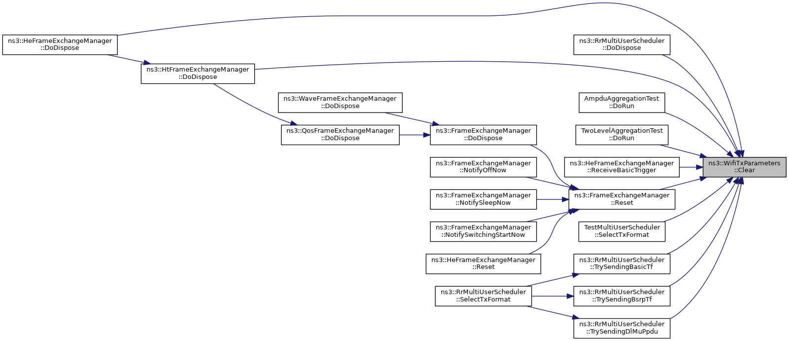Referenced by ns3::HeFrameExchangeManager::DoDispose(), ns3::RrMultiUserScheduler::DoDispose(), ns3::HtFrameExchangeManager::DoDispose(), AmpduAggregationTest::DoRun(), TwoLevelAggregationTest::DoRun(), ns3::HeFrameExchangeManager::ReceiveBasicTrigger(), ns3::FrameExchangeManager::Reset(), TestMultiUserScheduler::SelectTxFormat(), ns3::RrMultiUserScheduler::TrySendingBasicTf(), ns3::RrMultiUserScheduler::TrySendingBsrpTf(), and ns3::RrMultiUserScheduler::TrySendingDlMuPpdu().
