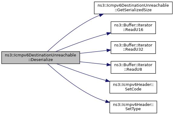 References GetSerializedSize(), ns3::Icmpv6Header::m_checksum, NS_LOG_FUNCTION, ns3::Buffer::Iterator::ReadU16(), ns3::Buffer::Iterator::ReadU32(), ns3::Buffer::Iterator::ReadU8(), ns3::Icmpv6Header::SetCode(), ns3::Icmpv6Header::SetType(), and two-ray-to-three-gpp-ch-calibration::start.