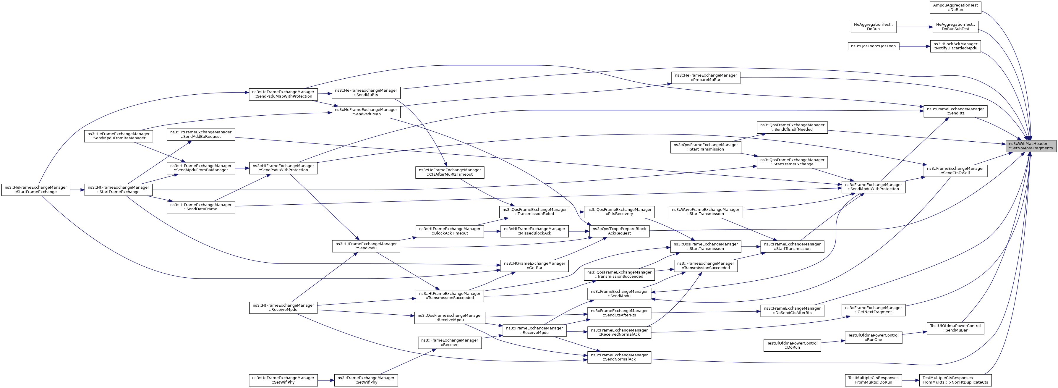 Referenced by WifiMacHeader(), ns3::InterferenceHelper::AddForeignSignal(), TxDurationTest::CalculateTxDurationUsingList(), WifiPhyCcaThresholdsTest::CreateDummyPsdu(), ns3::MeshWifiBeacon::CreateHeader(), OriginatorBlockAckWindowTest::DoRun(), BlockAckRecipientBufferTest::DoRun(), AmpduAggregationTest::DoRun(), TwoLevelAggregationTest::DoRun(), WifiMacQueueDropOldestTest::DoRun(), HeAggregationTest::DoRunSubTest(), ns3::FrameExchangeManager::DoSendCtsAfterRts(), WifiPrimaryChannelsTest::DoSendHeTbPpdu(), WifiPrimaryChannelsTest::DoSetup(), ns3::OcbWifiMac::Enqueue(), ns3::AdhocWifiMac::Enqueue(), ns3::StaWifiMac::Enqueue(), ns3::MeshWifiInterfaceMac::ForwardDown(), ns3::ApWifiMac::ForwardDown(), ns3::dot11s::HwmpProtocolMac::ForwardPerr(), ns3::GetAckSize(), ns3::GetBlockAckRequestSize(), ns3::GetBlockAckSize(), ns3::GetCtsSize(), ns3::GetMuBarSize(), ns3::GetRtsSize(), SpectrumWifiPhyBasicTest::MakeSignal(), WifiPhyThresholdsTest::MakeWifiSignal(), ns3::BlockAckManager::NotifyDiscardedMpdu(), ns3::HeFrameExchangeManager::PostProcessFrame(), ns3::QosTxop::PrepareBlockAckRequest(), ns3::HeFrameExchangeManager::PrepareMuBar(), TestMultipleHeTbPreambles::RxHeTbPpdu(), InterferenceExperiment::SendA(), ns3::HtFrameExchangeManager::SendAddBaRequest(), ns3::HtFrameExchangeManager::SendAddBaResponse(), TestAmpduReception::SendAmpduWithThreeMpdus(), ns3::StaWifiMac::SendAssociationRequest(), ns3::ApWifiMac::SendAssocResp(), InterferenceExperiment::SendB(), ns3::HtFrameExchangeManager::SendBlockAck(), ns3::QosFrameExchangeManager::SendCfEndIfNeeded(), ns3::FrameExchangeManager::SendCtsToSelf(), ns3::HtFrameExchangeManager::SendDelbaFrame(), WifiPrimaryChannelsTest::SendDlMuPpdu(), WifiPrimaryChannelsTest::SendDlSuPpdu(), WifiPhyCcaIndicationTest::SendHeSuPpdu(), TestUlOfdmaPhyTransmission::SendHeSuPpdu(), TestPhyPaddingExclusion::SendHeTbPpdu(), TestUlOfdmaPhyTransmission::SendHeTbPpdu(), TestUlOfdmaPowerControl::SendMuBar(), ns3::HeFrameExchangeManager::SendMultiStaBlockAck(), TestUlOfdmaPpduUid::SendMuPpdu(), TestDlOfdmaPhyTransmission::SendMuPpdu(), TestDlOfdmaPhyPuncturing::SendMuPpdu(), ns3::HeFrameExchangeManager::SendMuRts(), TestNonHtDuplicatePhyReception::SendNonHtDuplicatePpdu(), ns3::FrameExchangeManager::SendNormalAck(), ns3::ApWifiMac::SendOneBeacon(), TestThresholdPreambleDetectionWithoutFrameCapture::SendPacket(), TestThresholdPreambleDetectionWithFrameCapture::SendPacket(), TestPhyHeadersReception::SendPacket(), TestSimpleFrameCaptureModel::SendPacket(), ns3::dot11s::PeerManagementProtocolMac::SendPeerLinkManagementFrame(), SpectrumWifiPhyFilterTest::SendPpdu(), TestUnsupportedBandwidthReception::SendPpdu(), ns3::dot11s::HwmpProtocolMac::SendPrep(), ns3::dot11s::HwmpProtocolMac::SendPreqVector(), ns3::StaWifiMac::SendProbeRequest(), ns3::ApWifiMac::SendProbeResp(), ns3::HeFrameExchangeManager::SendQosNullFramesInTbPpdu(), ns3::FrameExchangeManager::SendRts(), TestUlOfdmaPpduUid::SendSuPpdu(), TestUlOfdmaPpduUid::SendTbPpdu(), ns3::OcbWifiMac::SendVsc(), ns3::dot11s::AirtimeLinkMetricCalculator::SetHeaderTid(), PowerRateAdaptationTest::TestAparf(), PowerRateAdaptationTest::TestParf(), PowerRateAdaptationTest::TestRrpaa(), and TestMultipleCtsResponsesFromMuRts::TxNonHtDuplicateCts().
