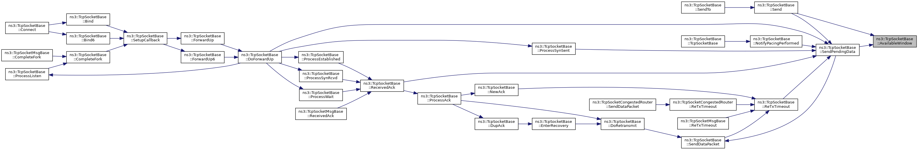 Referenced by TcpSocketBase(), AddOptionSack(), AddSocketTags(), AdvertisedWindowSize(), BytesInFlight(), CalculateWScale(), Close(), CompleteFork(), DelAckTimeout(), DoConnect(), DoForwardUp(), DoRetransmit(), DupAck(), EnterCwr(), EnterRecovery(), EstimateRtt(), ForwardUp(), ForwardUp6(), GetInitialCwnd(), GetInitialSSThresh(), GetRcvBufSize(), GetRxAvailable(), GetRxBuffer(), GetSegSize(), IsPacingEnabled(), IsValidTcpSegment(), NewAck(), OutOfRange(), PeerClose(), PersistTimeout(), ProcessAck(), ProcessClosing(), ProcessEstablished(), ProcessLastAck(), ProcessOptionTimestamp(), ProcessSynRcvd(), ProcessSynSent(), ProcessWait(), ReceivedAck(), ReceivedData(), Recv(), ReTxTimeout(), ns3::TcpSocketMsgBase::ReTxTimeout(), Send(), SendDataPacket(), TcpDctcpCongestedRouter::SendDataPacket(), ns3::TcpSocketCongestedRouter::SendDataPacket(), SendEmptyPacket(), ns3::TcpSocketSmallAcks::SendEmptyPacket(), SendPendingData(), SetCongestionControlAlgorithm(), SetInitialCwnd(), SetInitialSSThresh(), SetPaceInitialWindow(), SetPacingStatus(), SetRcvBufSize(), SetSegSize(), SetUseEcn(), UnAckDataCount(), UpdatePacingRate(), and Window().