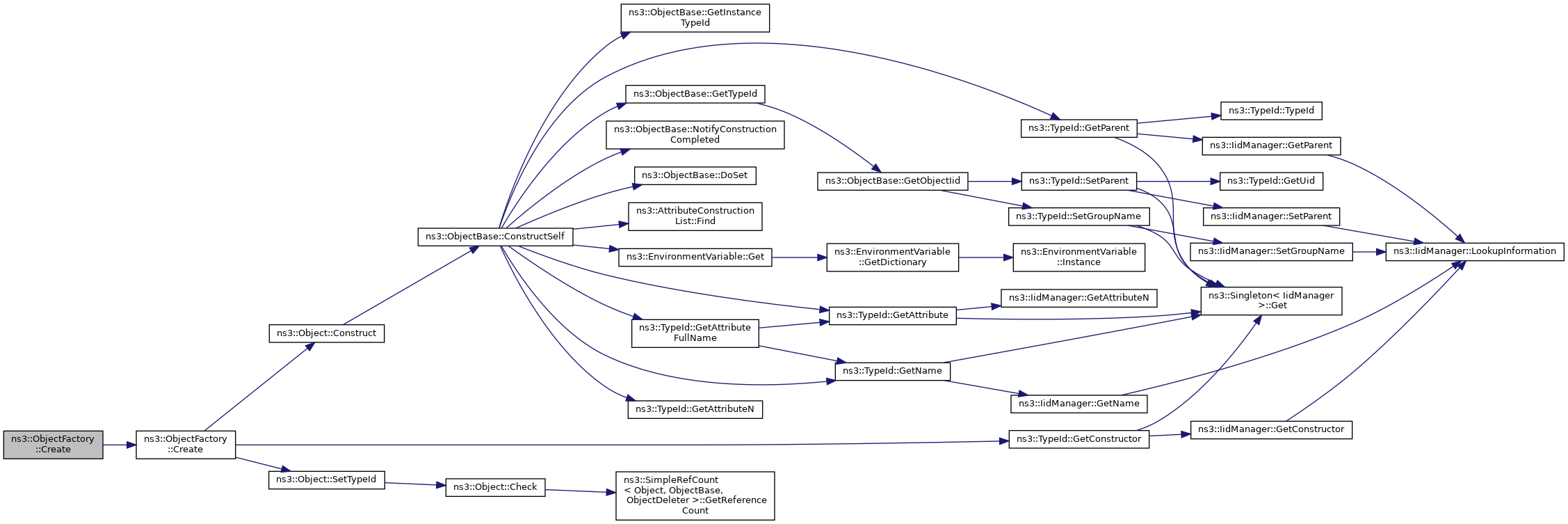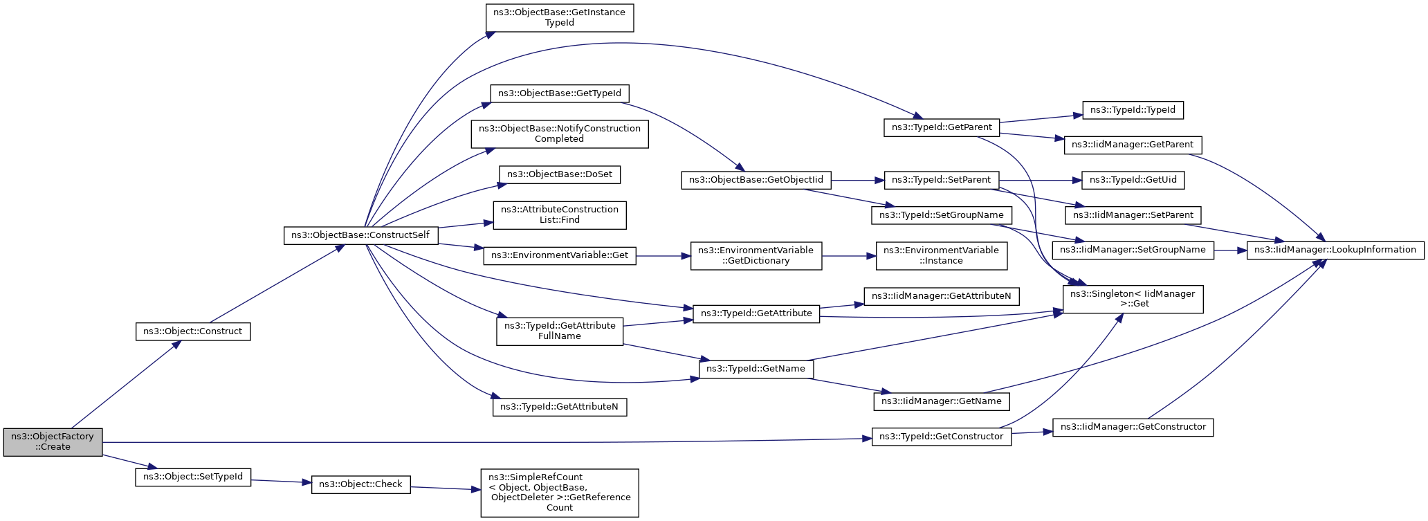 Here is the call graph for this function:| Ptr< T > ns3::ObjectFactory::Create |