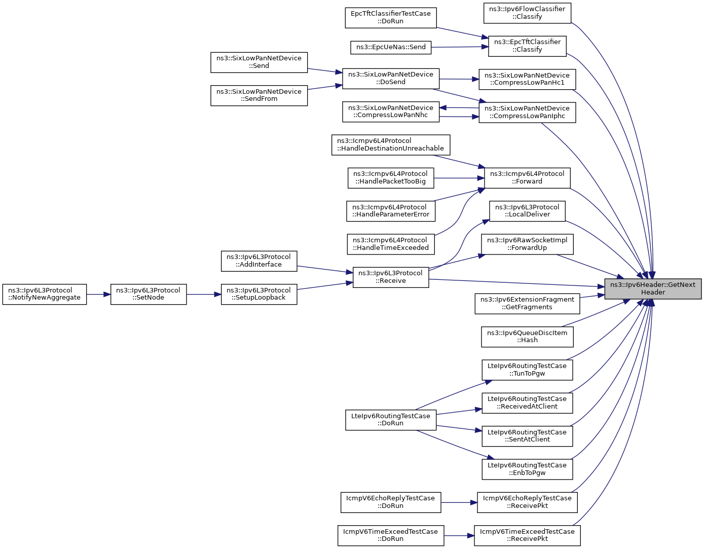 Referenced by ns3::Ipv6FlowClassifier::Classify(), ns3::EpcTftClassifier::Classify(), ns3::SixLowPanNetDevice::CompressLowPanHc1(), ns3::SixLowPanNetDevice::CompressLowPanIphc(), LteIpv6RoutingTestCase::EnbToPgw(), ns3::Icmpv6L4Protocol::Forward(), ns3::Ipv6RawSocketImpl::ForwardUp(), ns3::Ipv6ExtensionFragment::GetFragments(), ns3::Ipv6QueueDiscItem::Hash(), ns3::Ipv6L3Protocol::LocalDeliver(), ns3::Ipv6L3Protocol::Receive(), LteIpv6RoutingTestCase::ReceivedAtClient(), IcmpV6EchoReplyTestCase::ReceivePkt(), IcmpV6TimeExceedTestCase::ReceivePkt(), LteIpv6RoutingTestCase::SentAtClient(), and LteIpv6RoutingTestCase::TunToPgw().