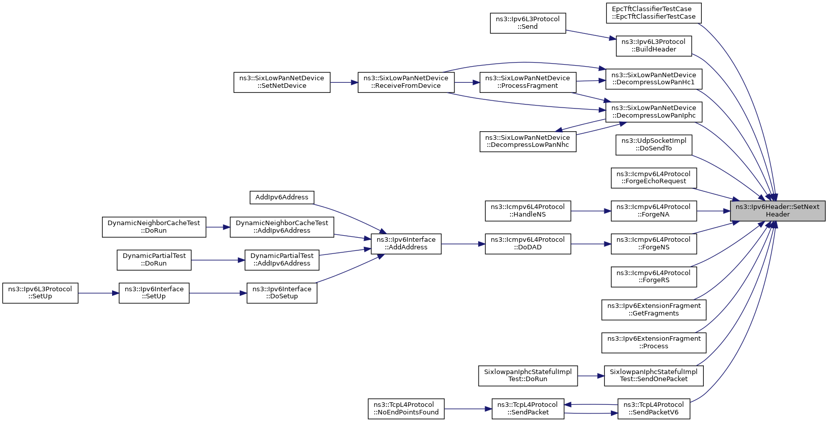 Here is the caller graph for this function:| void ns3::Ipv6Header::SetNextHeader | ( | uint8_t | next | ) |
