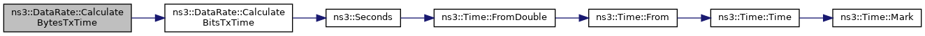 Here is the call graph for this function:| Time ns3::DataRate::CalculateBitsTxTime | ( | uint32_t | bits | ) | const |