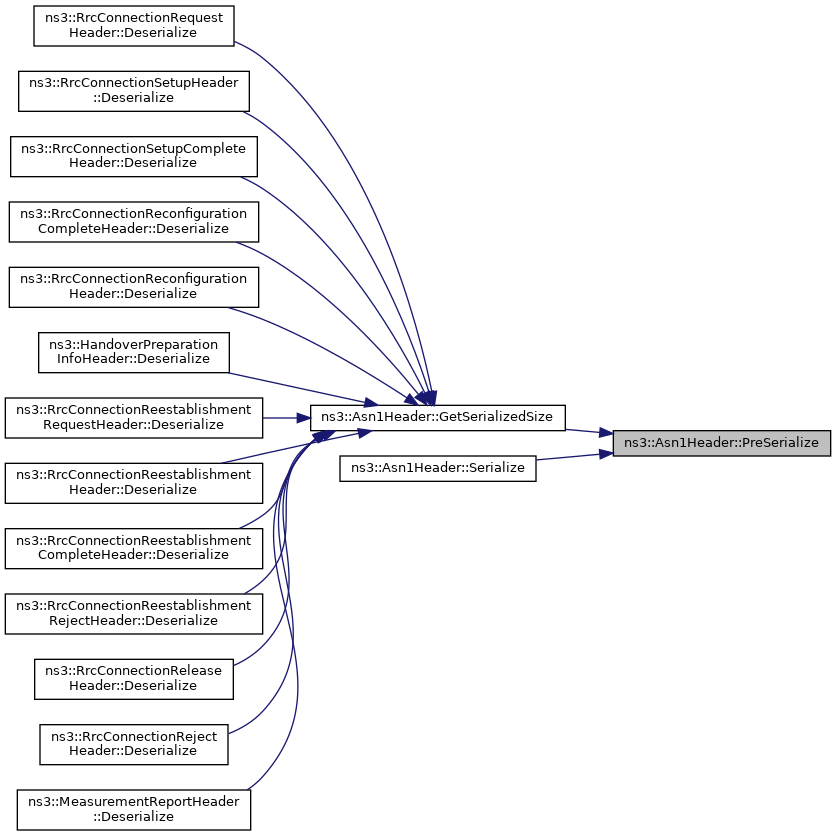 Referenced by ns3::RrcConnectionRequestHeader::PreSerialize(), ns3::RrcConnectionSetupHeader::PreSerialize(), ns3::RrcConnectionSetupCompleteHeader::PreSerialize(), ns3::RrcConnectionReconfigurationCompleteHeader::PreSerialize(), ns3::RrcConnectionReconfigurationHeader::PreSerialize(), ns3::HandoverPreparationInfoHeader::PreSerialize(), ns3::RrcConnectionReestablishmentRequestHeader::PreSerialize(), ns3::RrcConnectionReestablishmentHeader::PreSerialize(), ns3::RrcConnectionReestablishmentCompleteHeader::PreSerialize(), ns3::RrcConnectionReestablishmentRejectHeader::PreSerialize(), ns3::RrcConnectionReleaseHeader::PreSerialize(), ns3::RrcConnectionRejectHeader::PreSerialize(), ns3::MeasurementReportHeader::PreSerialize(), ns3::RrcDlCcchMessage::SerializeDlCcchMessage(), ns3::RrcDlDcchMessage::SerializeDlDcchMessage(), ns3::RrcAsn1Header::SerializeDrbToAddModList(), ns3::RrcAsn1Header::SerializeLogicalChannelConfig(), ns3::RrcAsn1Header::SerializeMeasConfig(), ns3::RrcAsn1Header::SerializeMeasResults(), ns3::RrcAsn1Header::SerializeNonCriticalExtensionConfiguration(), ns3::RrcAsn1Header::SerializePhysicalConfigDedicated(), ns3::RrcAsn1Header::SerializePhysicalConfigDedicatedSCell(), ns3::RrcAsn1Header::SerializePlmnIdentity(), ns3::RrcAsn1Header::SerializeRachConfigCommon(), ns3::RrcAsn1Header::SerializeRadioResourceConfigCommon(), ns3::RrcAsn1Header::SerializeRadioResourceConfigCommonSCell(), ns3::RrcAsn1Header::SerializeRadioResourceConfigCommonSib(), ns3::RrcAsn1Header::SerializeRadioResourceConfigDedicated(), ns3::RrcAsn1Header::SerializeRadioResourceDedicatedSCell(), ns3::RrcAsn1Header::SerializeSrbToAddModList(), ns3::RrcAsn1Header::SerializeSystemInformationBlockType1(), ns3::RrcAsn1Header::SerializeSystemInformationBlockType2(), ns3::RrcUlCcchMessage::SerializeUlCcchMessage(), and ns3::RrcUlDcchMessage::SerializeUlDcchMessage().