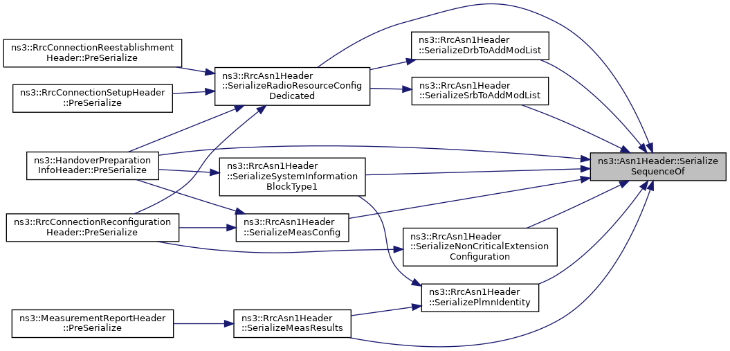 Referenced by ns3::RrcConnectionRequestHeader::PreSerialize(), ns3::RrcConnectionReconfigurationHeader::PreSerialize(), ns3::HandoverPreparationInfoHeader::PreSerialize(), ns3::RrcConnectionReestablishmentRequestHeader::PreSerialize(), ns3::RrcConnectionReleaseHeader::PreSerialize(), ns3::RrcAsn1Header::SerializeDrbToAddModList(), ns3::RrcAsn1Header::SerializeLogicalChannelConfig(), ns3::RrcAsn1Header::SerializeMeasConfig(), ns3::RrcAsn1Header::SerializePhysicalConfigDedicated(), ns3::RrcAsn1Header::SerializePhysicalConfigDedicatedSCell(), ns3::RrcAsn1Header::SerializePlmnIdentity(), ns3::RrcAsn1Header::SerializeQoffsetRange(), ns3::RrcAsn1Header::SerializeRachConfigCommon(), ns3::RrcAsn1Header::SerializeRadioResourceConfigCommon(), ns3::RrcAsn1Header::SerializeRadioResourceConfigCommonSib(), ns3::RrcAsn1Header::SerializeSystemInformationBlockType1(), and ns3::RrcAsn1Header::SerializeSystemInformationBlockType2().