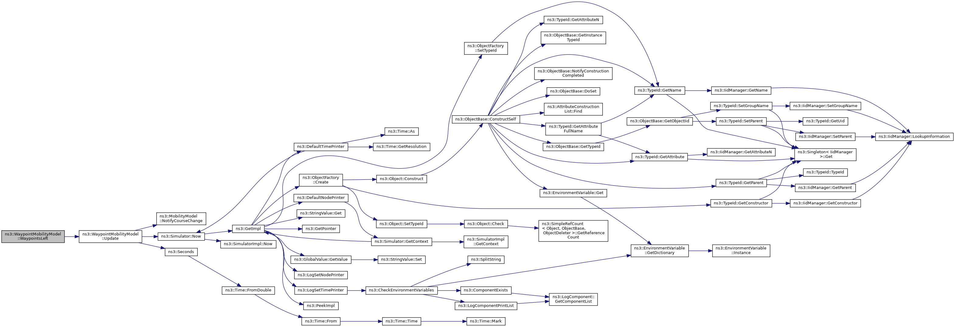 Each object determines its velocity and position at a given time from a set of ns3::Waypoint objects. Past waypoints are discarded after the current simulation time greater than their time value.