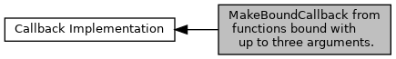 Collaboration diagram for MakeBoundCallback from functions bound with up to three arguments.:| template<typename R , typename... Args, typename... BArgs> | |