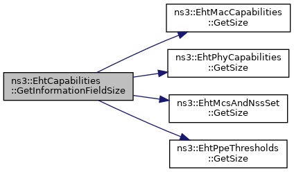 References ns3::EhtMacCapabilities::GetSize(), ns3::EhtPhyCapabilities::GetSize(), ns3::EhtMcsAndNssSet::GetSize(), ns3::EhtPpeThresholds::GetSize(), m_macCapabilities, m_phyCapabilities, m_ppeThresholds, m_supportedEhtMcsAndNssSet, and ns3::EhtPhyCapabilities::ppeThresholdsPresent.