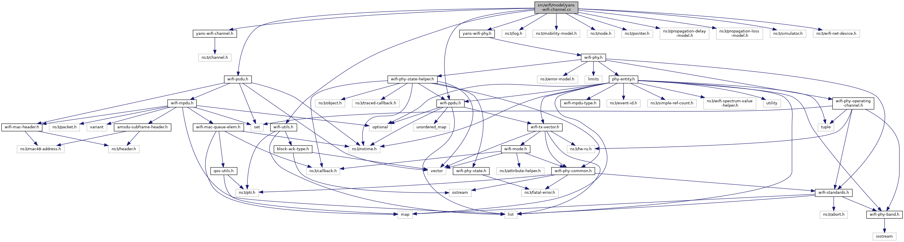 Include dependency graph for yans-wifi-channel.cc:Go to the source code of this file.