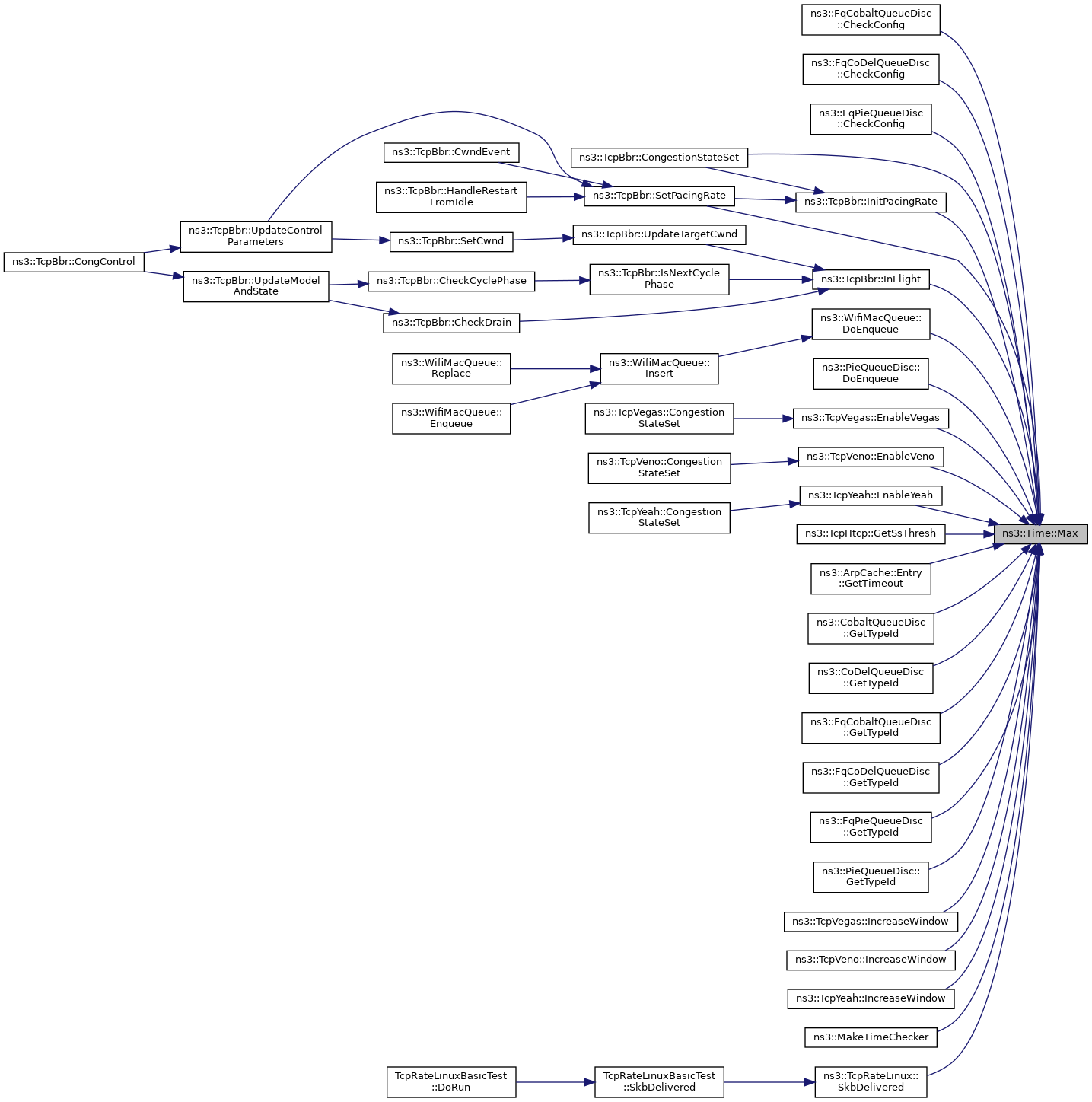 Referenced by ns3::FqCobaltQueueDisc::CheckConfig(), ns3::FqCoDelQueueDisc::CheckConfig(), ns3::FqPieQueueDisc::CheckConfig(), ns3::TcpBbr::CongestionStateSet(), ns3::WifiMacQueue::DoEnqueue(), ns3::PieQueueDisc::DoEnqueue(), ns3::TcpVegas::EnableVegas(), ns3::TcpVeno::EnableVeno(), ns3::TcpYeah::EnableYeah(), ns3::TcpHtcp::GetSsThresh(), ns3::ArpCache::Entry::GetTimeout(), ns3::CobaltQueueDisc::GetTypeId(), ns3::CoDelQueueDisc::GetTypeId(), ns3::FqCobaltQueueDisc::GetTypeId(), ns3::FqCoDelQueueDisc::GetTypeId(), ns3::FqPieQueueDisc::GetTypeId(), ns3::PieQueueDisc::GetTypeId(), ns3::TcpVegas::IncreaseWindow(), ns3::TcpVeno::IncreaseWindow(), ns3::TcpYeah::IncreaseWindow(), ns3::TcpBbr::InFlight(), ns3::TcpBbr::InitPacingRate(), ns3::MakeTimeChecker(), ns3::TcpBbr::SetPacingRate(), and ns3::TcpRateLinux::SkbDelivered().