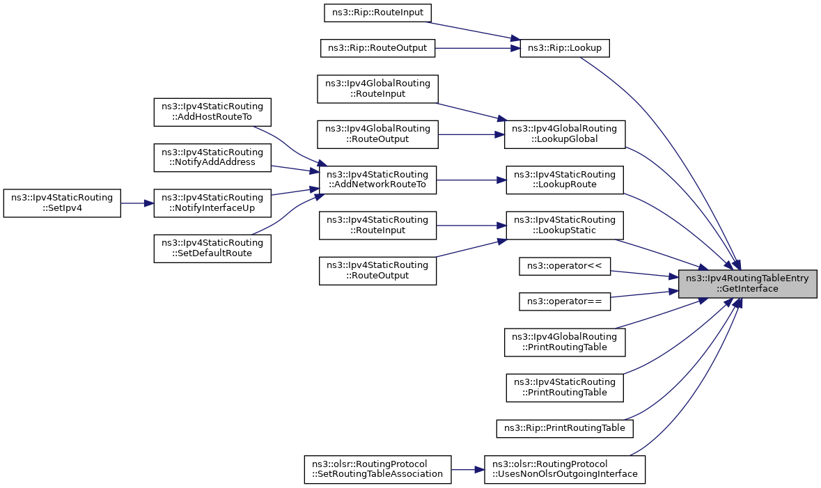 Referenced by ns3::Rip::Lookup(), ns3::Ipv4GlobalRouting::LookupGlobal(), ns3::Ipv4StaticRouting::LookupRoute(), ns3::Ipv4StaticRouting::LookupStatic(), ns3::operator<<(), ns3::operator==(), ns3::Ipv4GlobalRouting::PrintRoutingTable(), ns3::Ipv4StaticRouting::PrintRoutingTable(), ns3::Rip::PrintRoutingTable(), and ns3::olsr::RoutingProtocol::UsesNonOlsrOutgoingInterface().