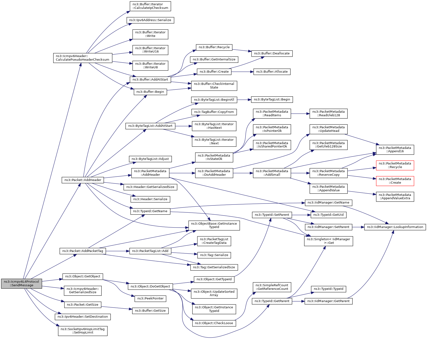 | void | SendMessage (Ptr< Packet > packet, Ipv6Address dst, Icmpv6Header &icmpv6Hdr, uint8_t ttl) |