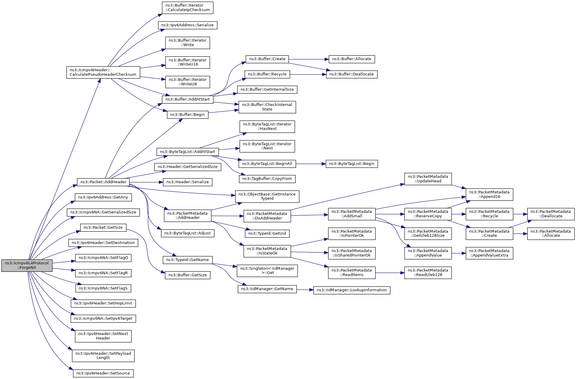References ns3::Packet::AddHeader(), ns3::Icmpv6Header::CalculatePseudoHeaderChecksum(), ns3::Ipv6Address::GetAny(), ns3::Icmpv6NA::GetSerializedSize(), ns3::Packet::GetSize(), NS_LOG_FUNCTION, NS_LOG_LOGIC, PROT_NUMBER, SendMessage(), ns3::Icmpv6NA::SetFlagO(), ns3::Icmpv6NA::SetFlagR(), ns3::Icmpv6NA::SetFlagS(), and ns3::Icmpv6NA::SetIpv6Target().