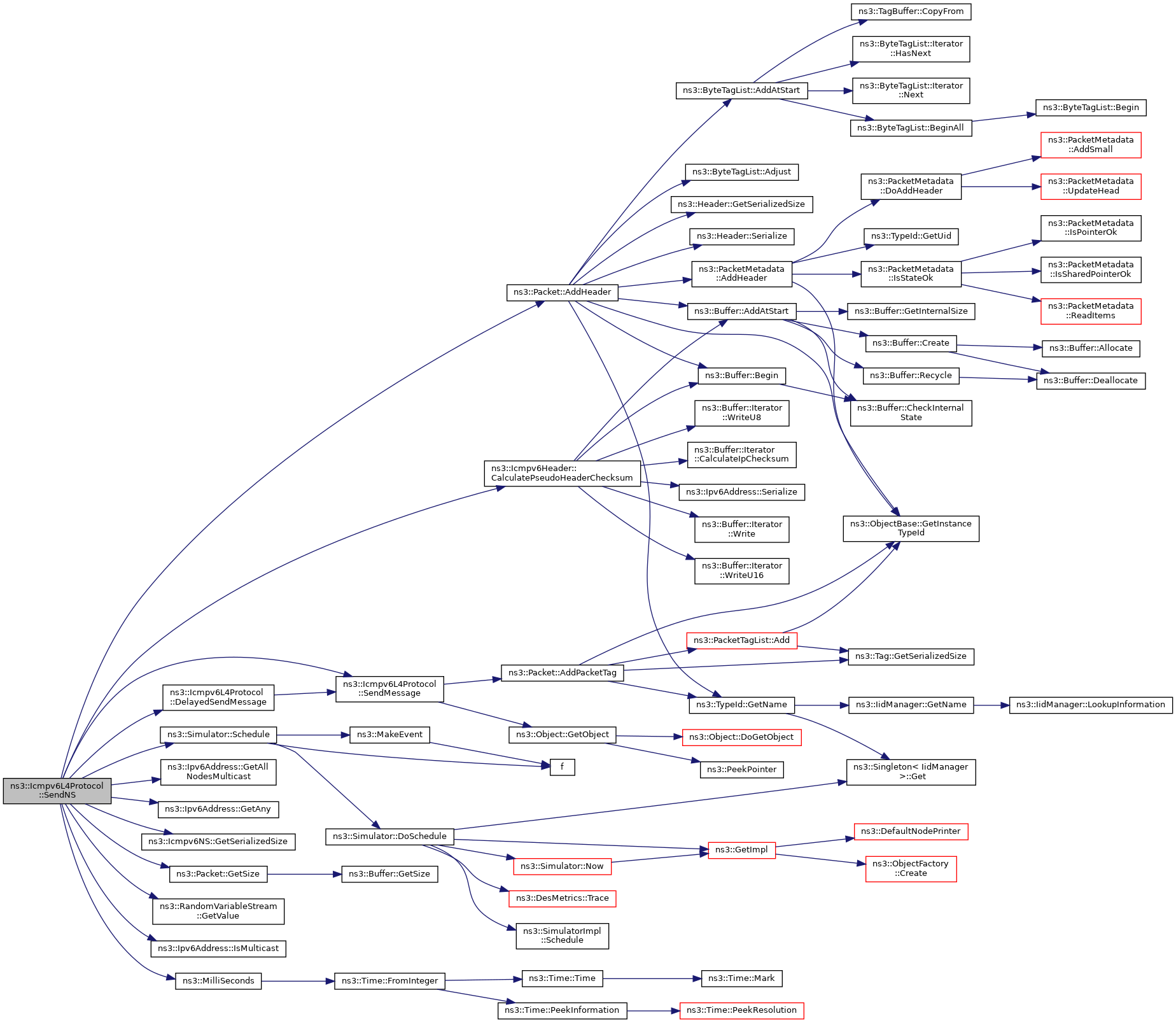 References ns3::Packet::AddHeader(), ns3::Icmpv6Header::CalculatePseudoHeaderChecksum(), DelayedSendMessage(), ns3::Ipv6Address::GetAllNodesMulticast(), ns3::Ipv6Address::GetAny(), ns3::Icmpv6NS::GetSerializedSize(), ns3::Packet::GetSize(), ns3::RandomVariableStream::GetValue(), ns3::Ipv6Address::IsMulticast(), m_solicitationJitter, ns3::MilliSeconds(), NS_LOG_FUNCTION, NS_LOG_LOGIC, PROT_NUMBER, ns3::Simulator::Schedule(), and SendMessage().