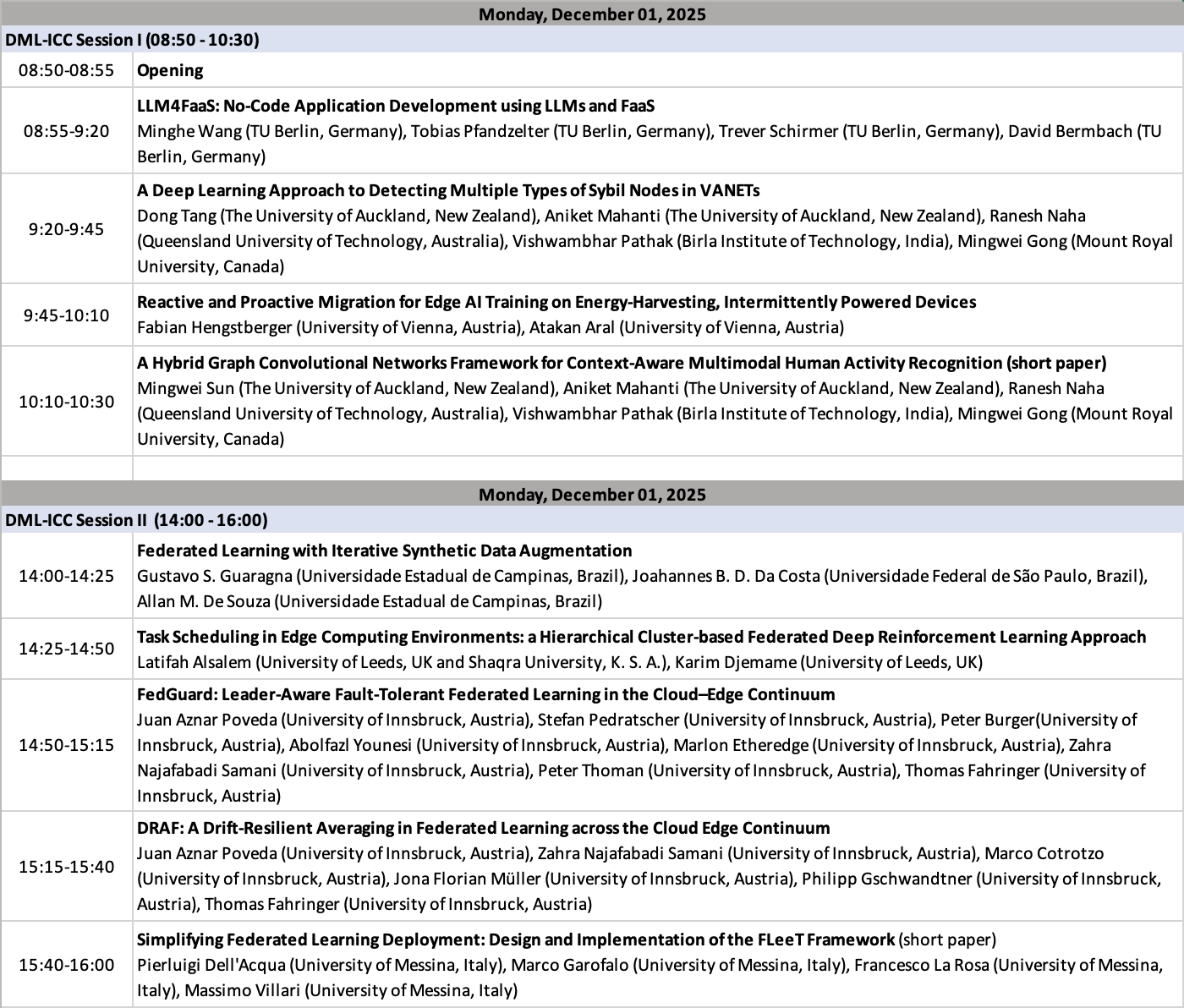 DML-ICC 2025 workshop aims to attract researchers from the machine learning community, especially the ones involved with distributed machine learning techniques, and researchers from the parallel/distributed computing communities. Together, these researchers will be able to build resource management mechanisms that are able to fulfill machine learning jobs requirements, but also use machine learning techniques to improve resource management in large distributed systems. Topics of interest include but are not limited to: